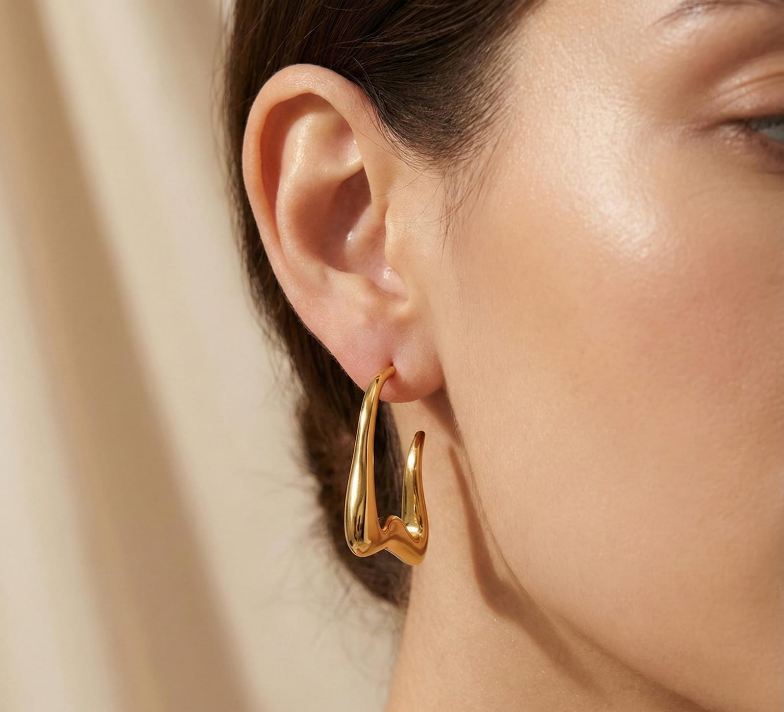 Stylish abstract wave hoop earrings in gold-plated stainless steel. Anti-tarnish, lightweight, and perfect for minimal yet bold styling.